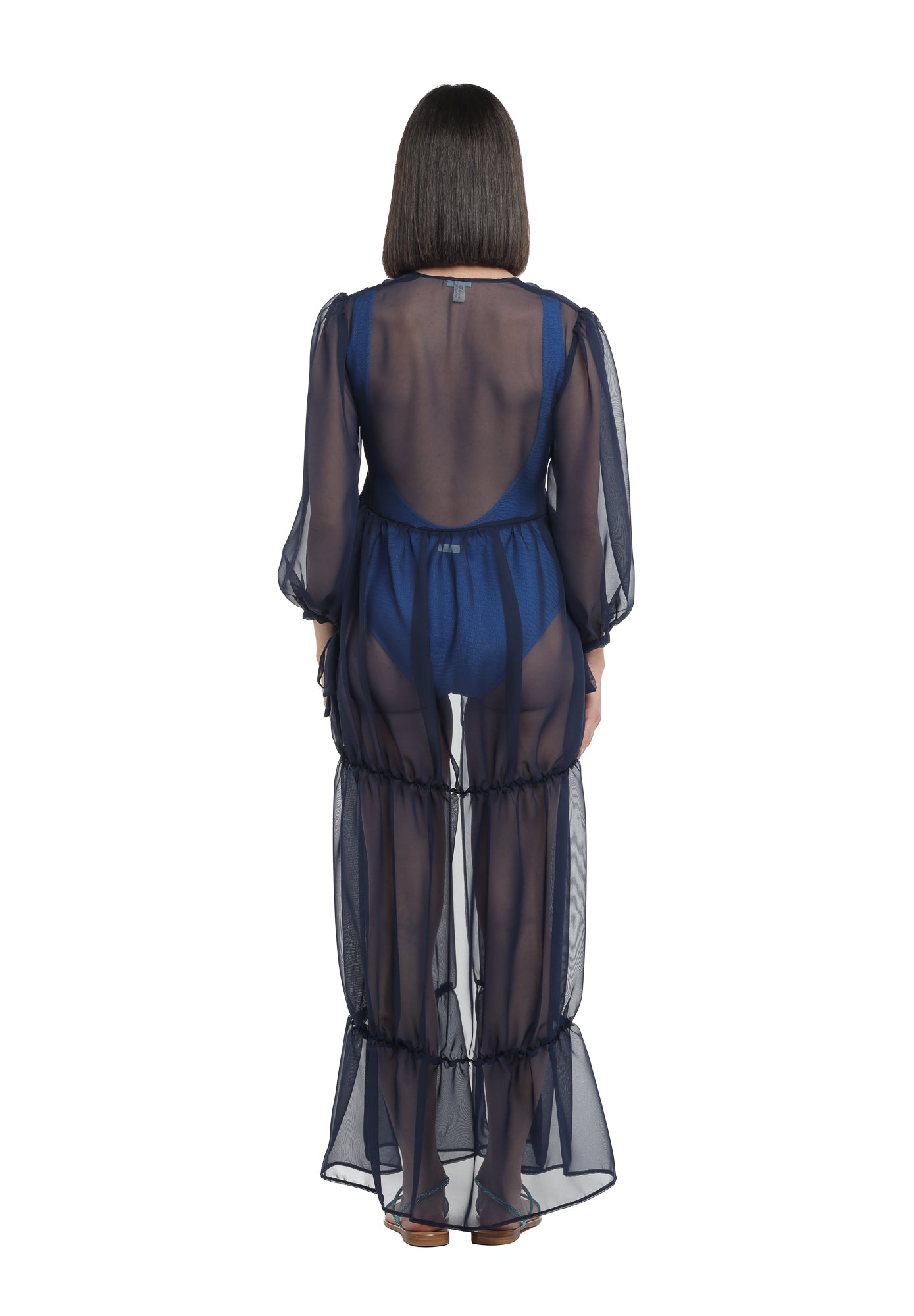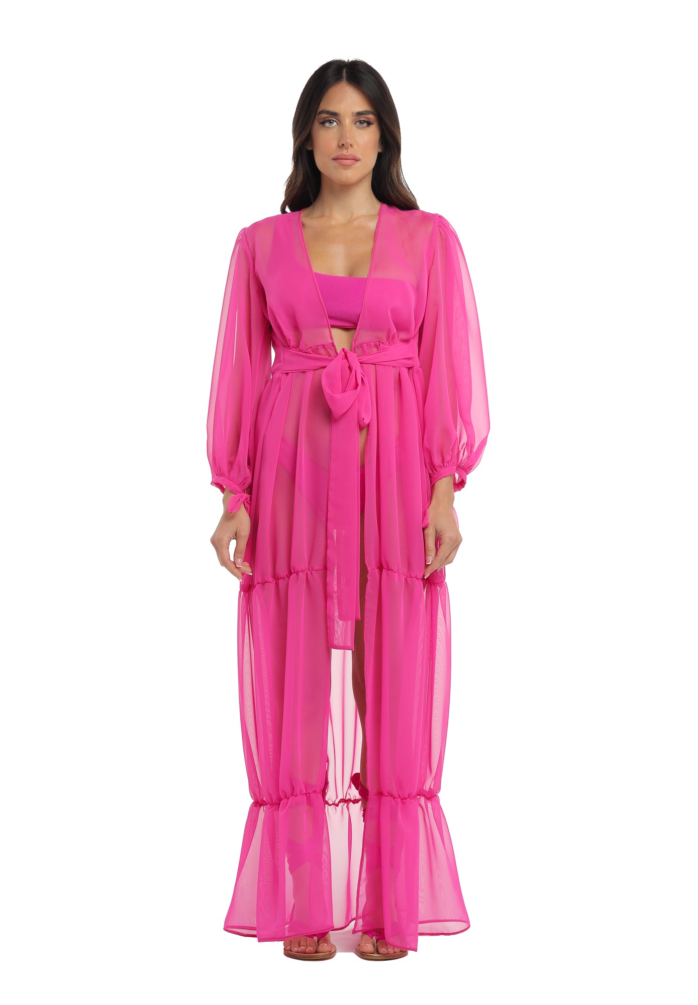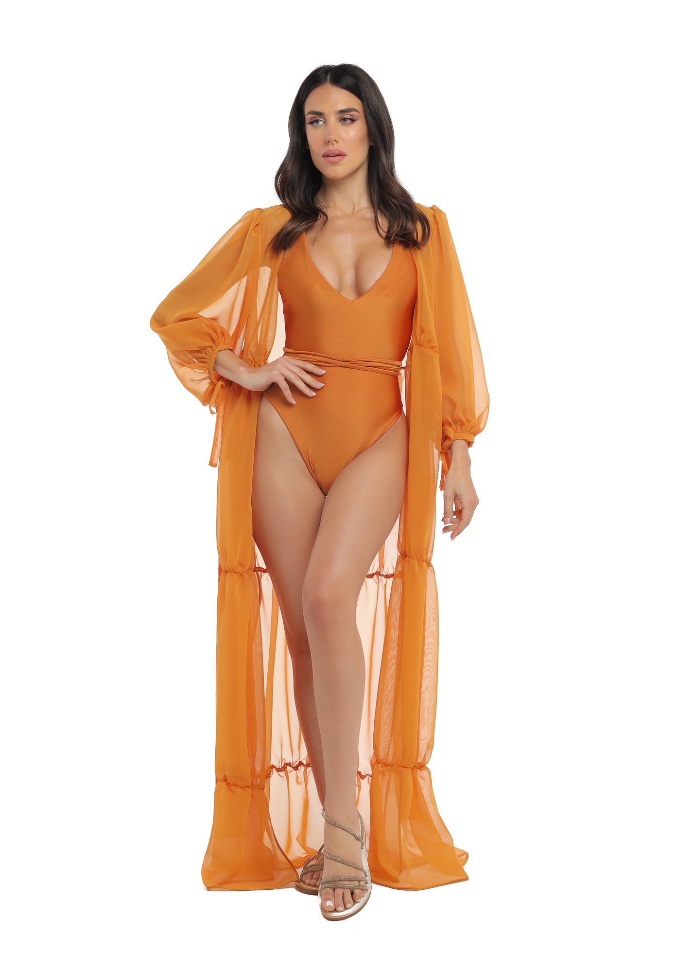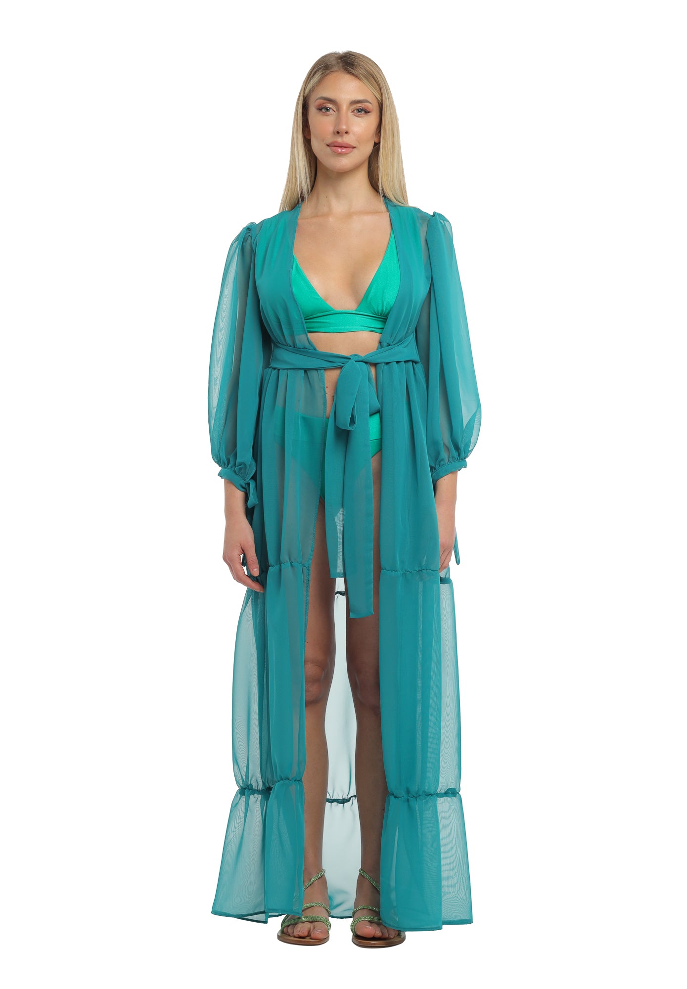 Kimono lungo con balze made in Italy in tessuto chiffon.