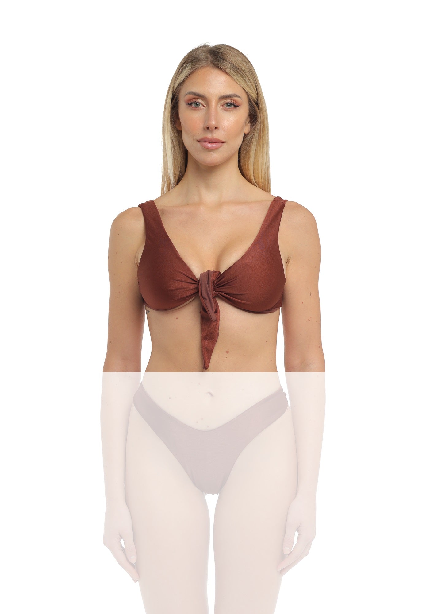 Top fisso a forma di triangolo con nodo centrale regolabile, presenti coppe preformate estraibili